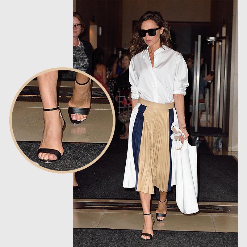 Victoria Beckham, along with many celebrities from supermodel Naomi Campbell to royalty like Megan Markle and Kate Middleton – Duchess of Cambridge all wear ostentatious heels and wear them religiously. So it is hardly surprising that, as a consequence, they have bunions visibly poking out from their Louboutins!